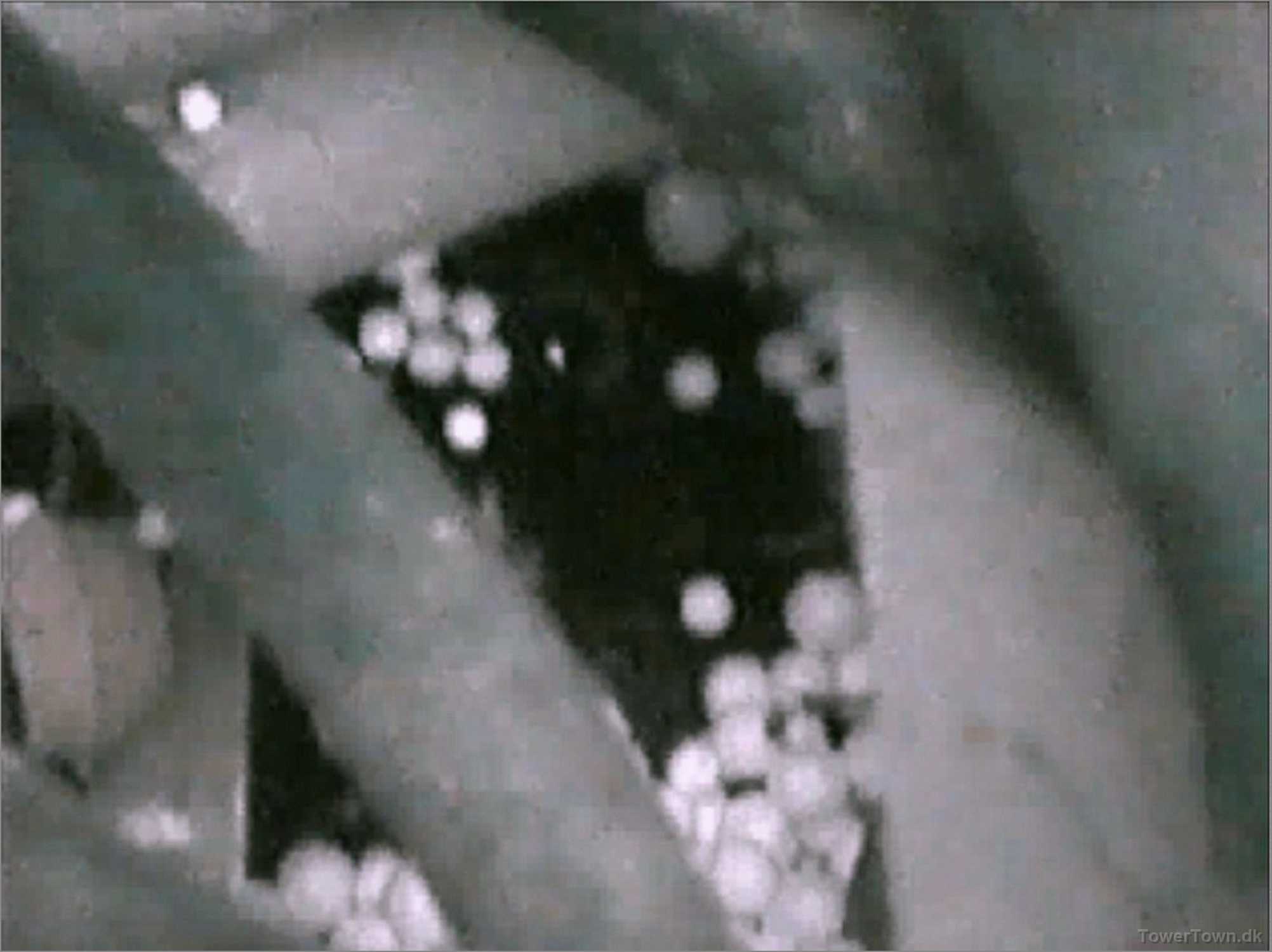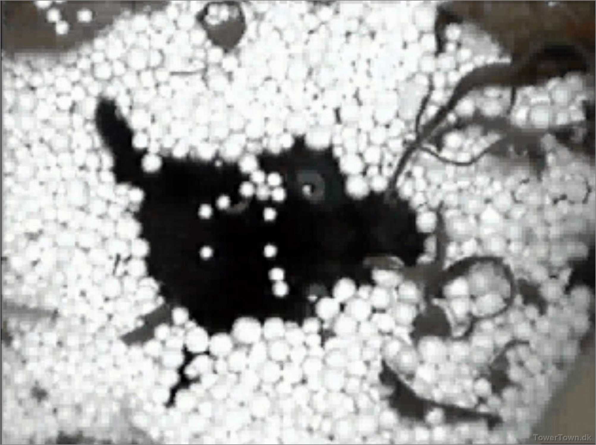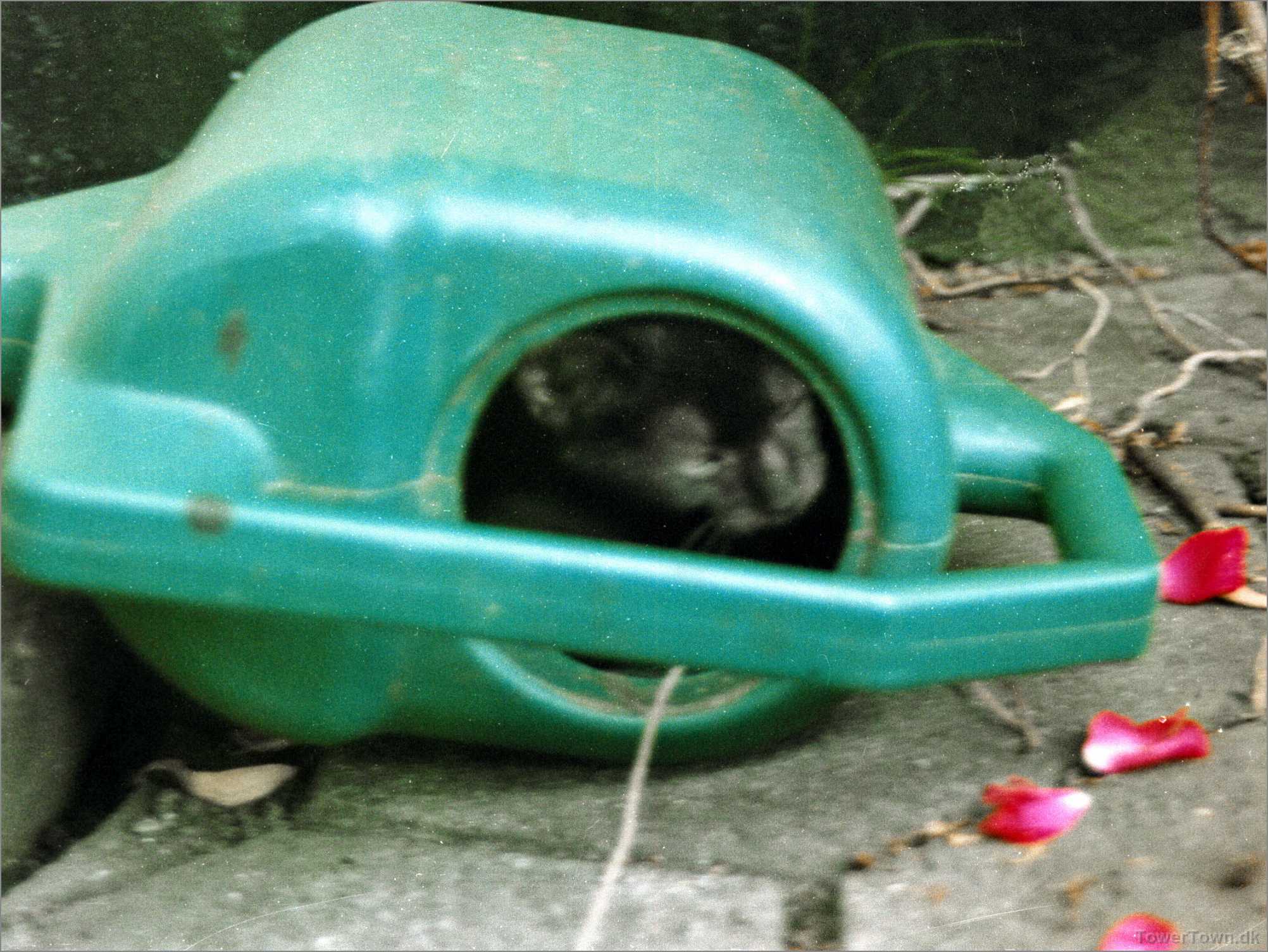 Over ham lå to klapstole og 20 meter haveslange mm., så det var et svineheld ud over alle grænser, at få øje på ham nede i brændekassen, samt overhovedet at få indskydelsen til at kikke derned.