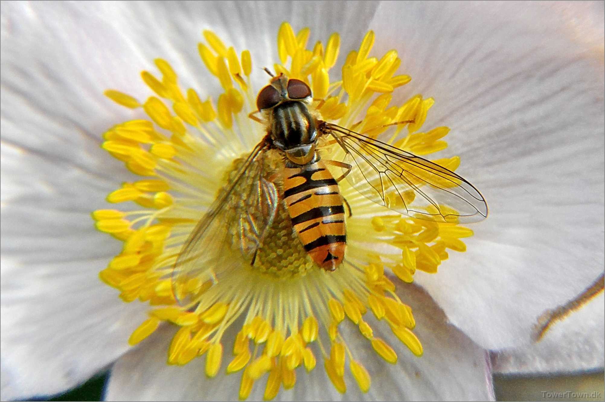 Hvepselignende blomsterflue, der benytter sig af 'beskyttelseslighed' (mimicry) med et afskyet insekt.