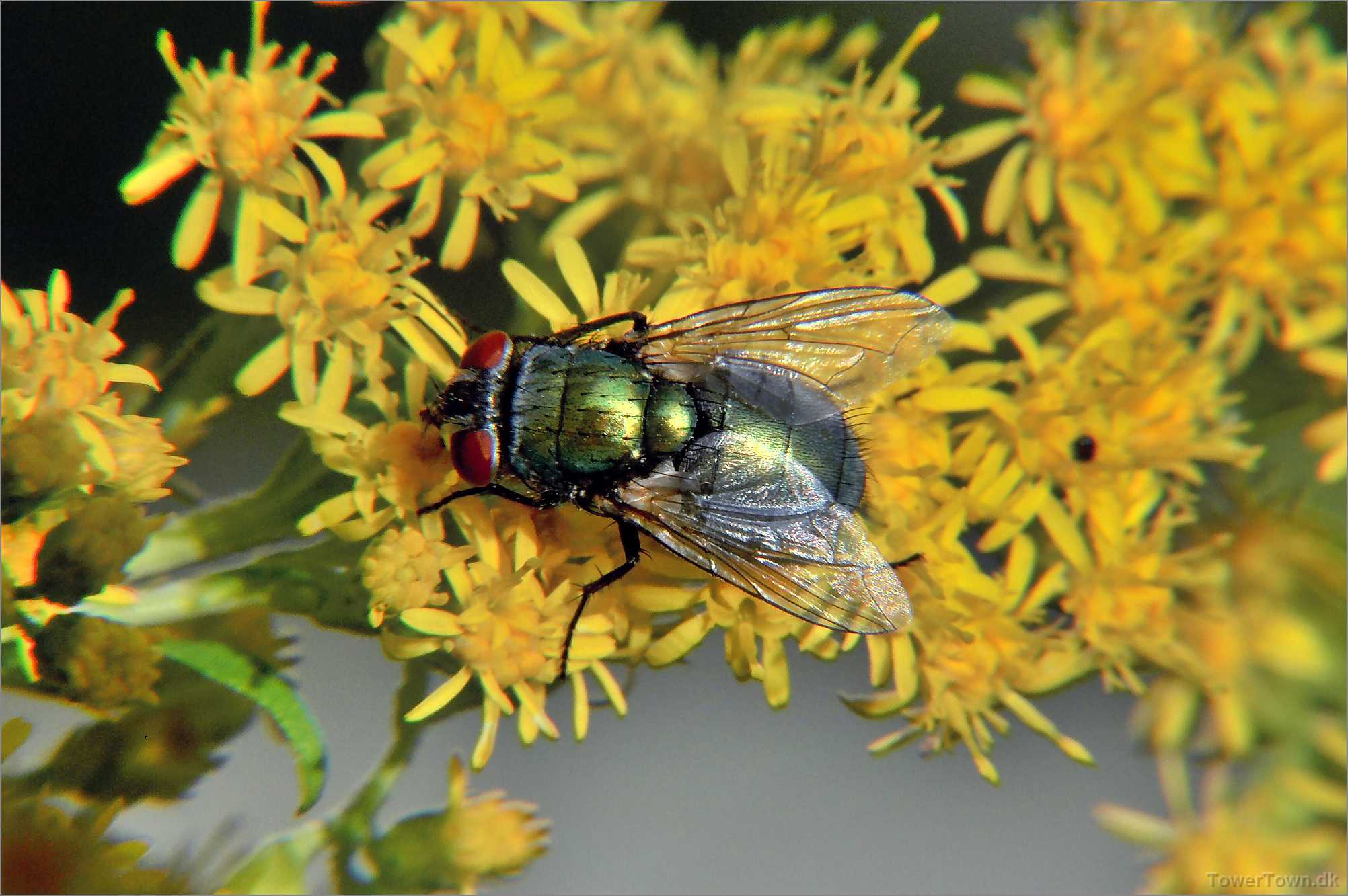 Her følger en serie billeder af 'Lucilia caesar', der også hedder Guldflue, selvom den ofte er grøn.