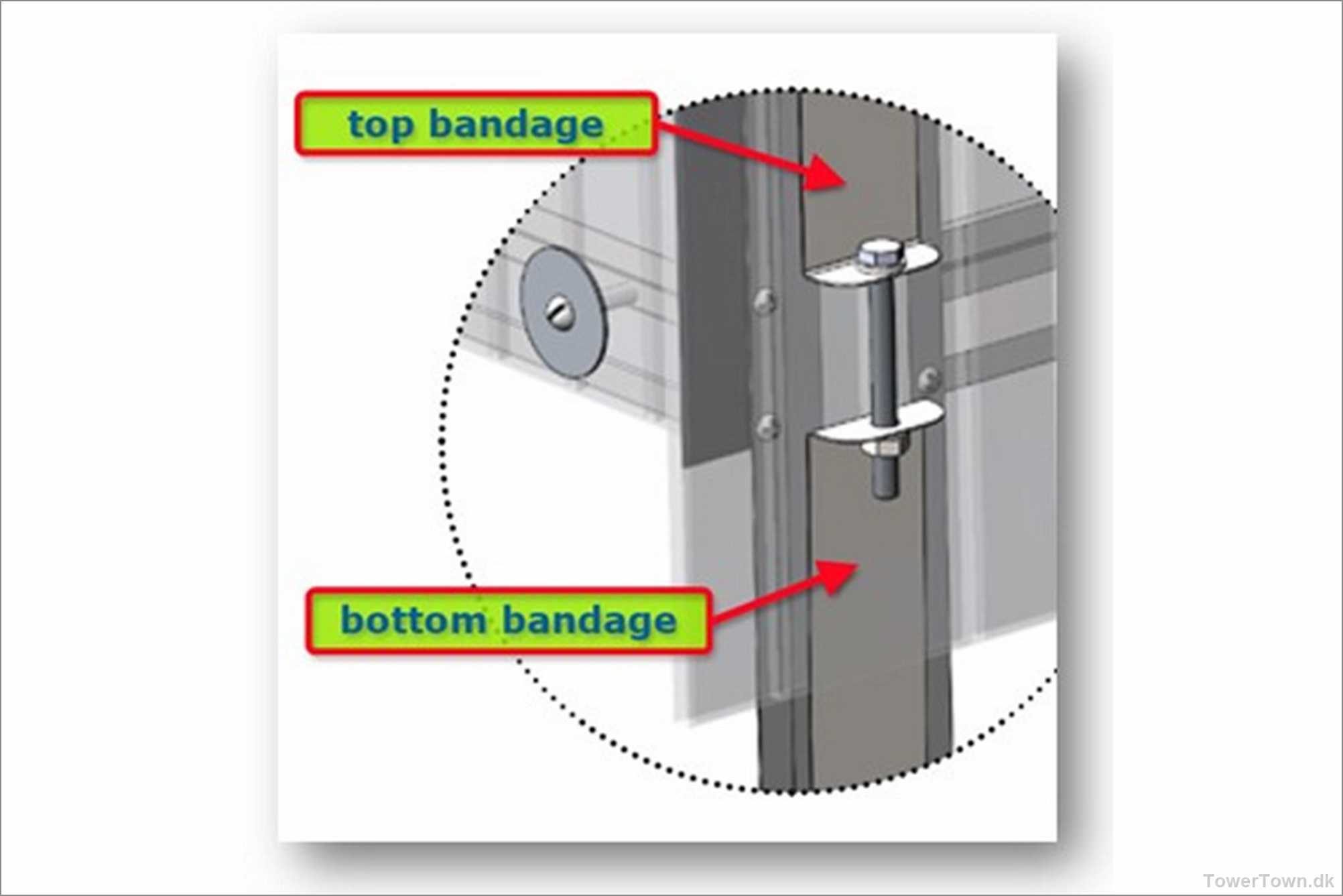 Her holdes en tagplade op og gør det indlysende, hvad vej Bottom bandage (B) skal vende.