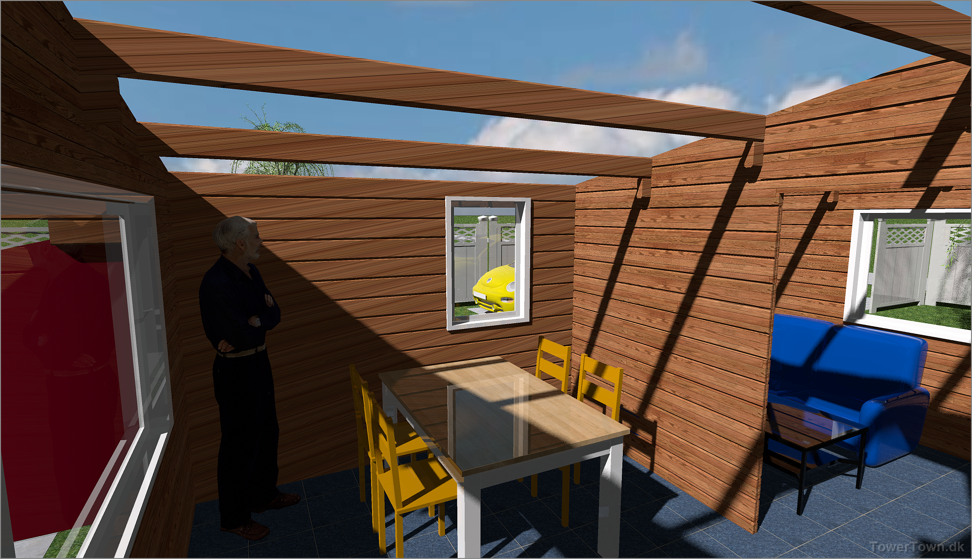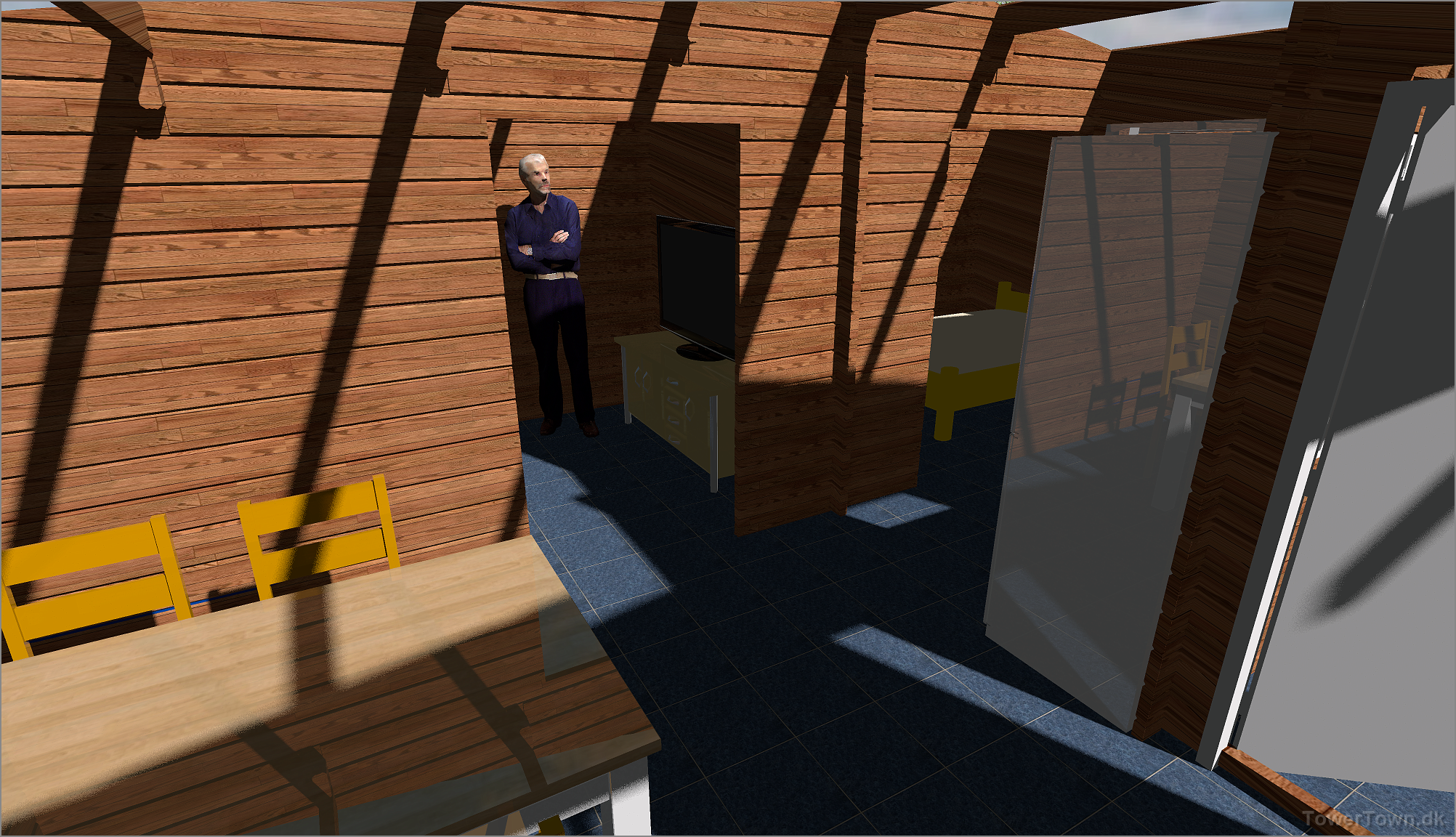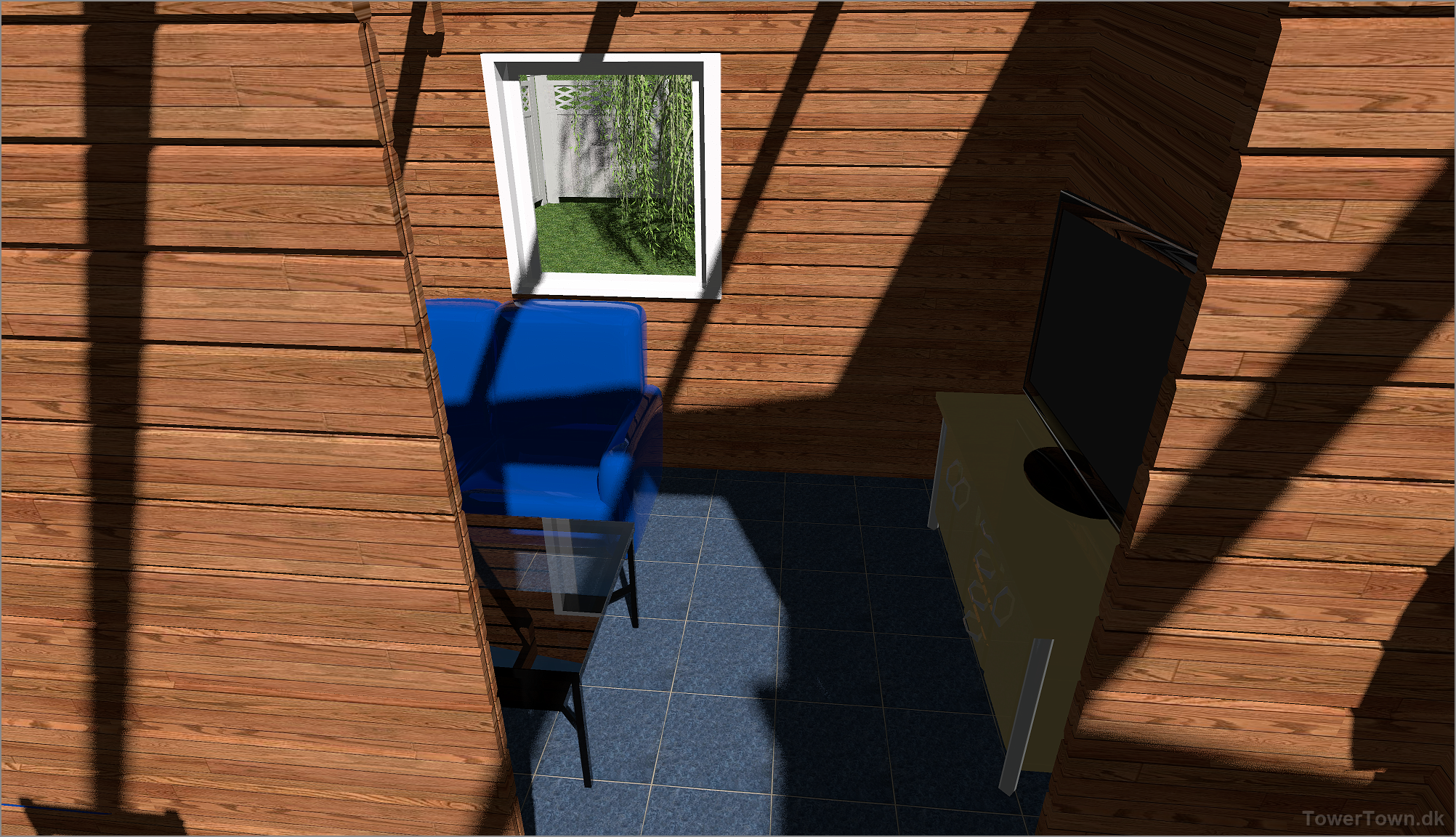 Soveværelse 2 er her brugt til TV-stue, hvorfor væggen bør fjernes.
