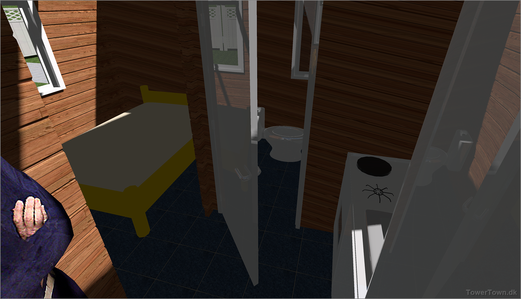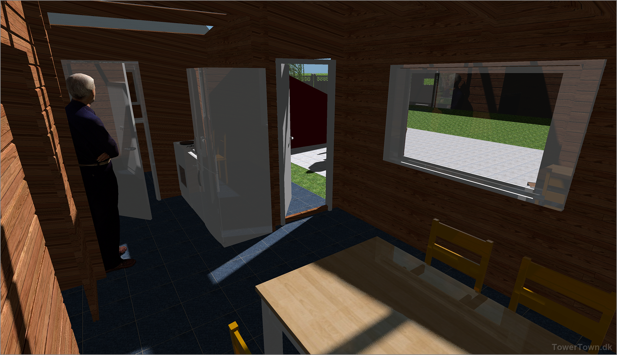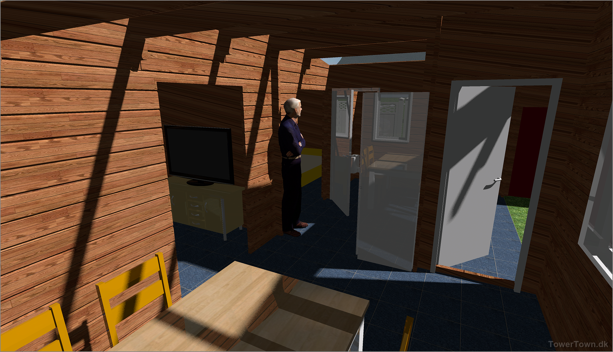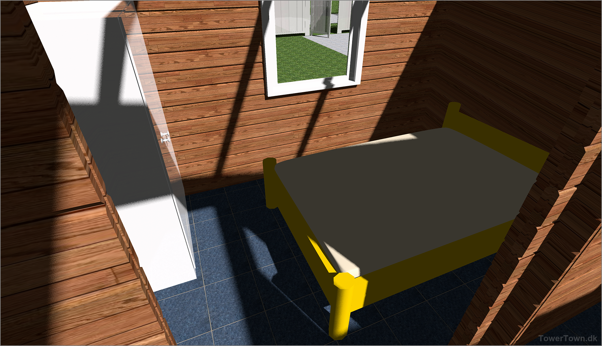 Af pladshensyn bør døren til soveværelset være en skydedør.