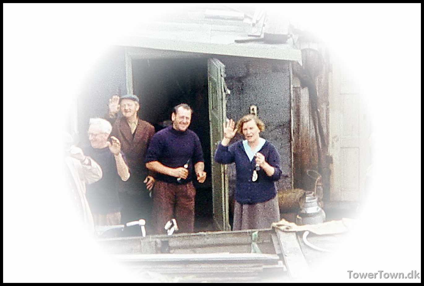 Willy og Ragna i blåt midt i billedet på besøg hos Poul Otto (28).