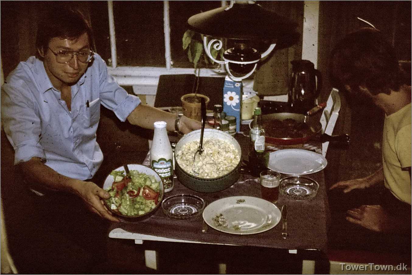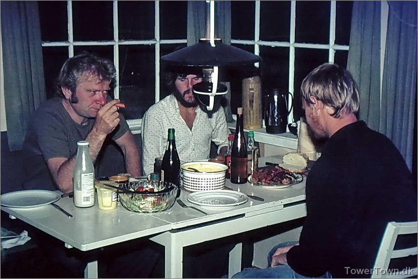 Farbror Hans (H15A), Ole og Ejvind (H21, H1) ved middagsbordet.