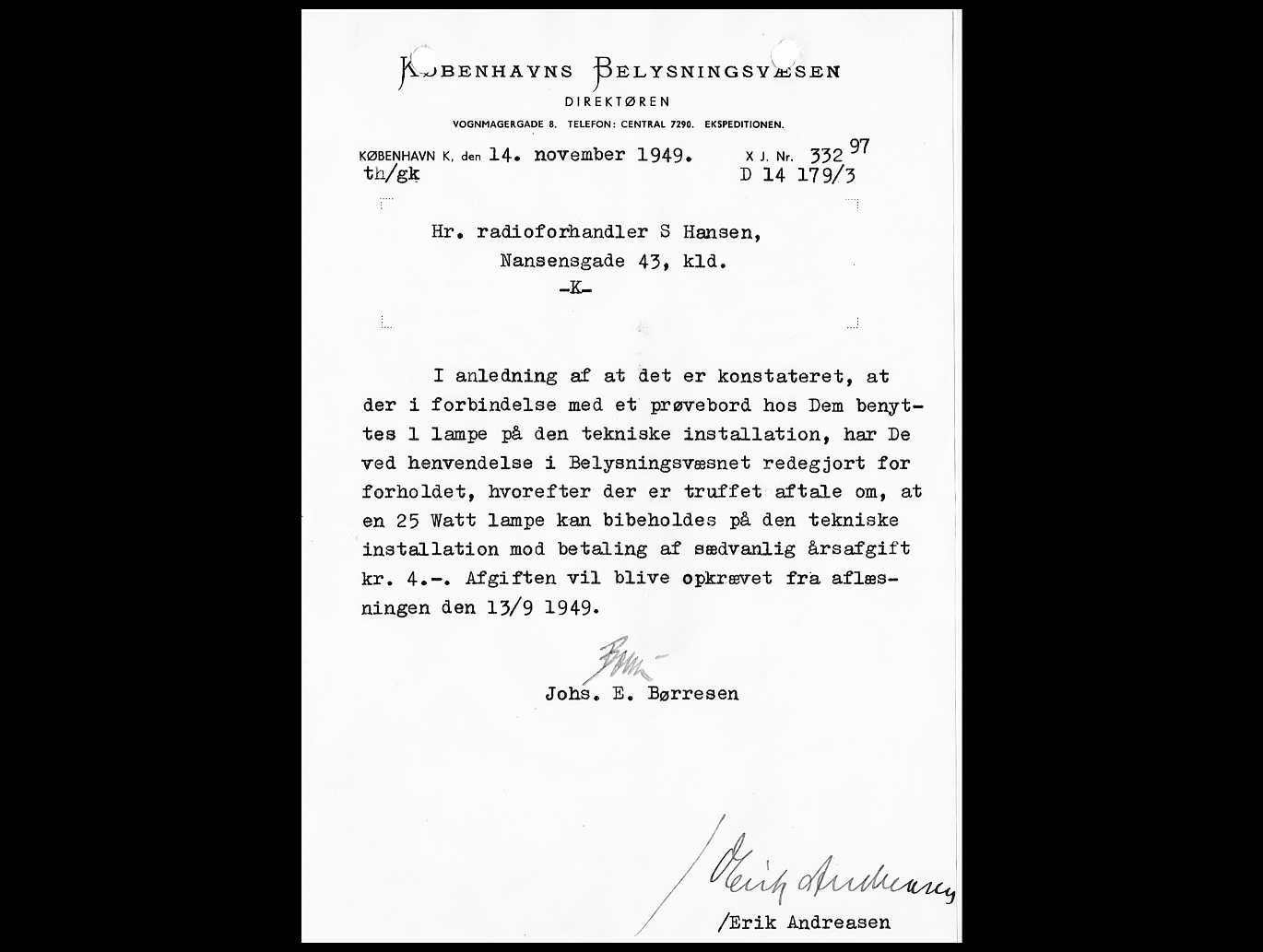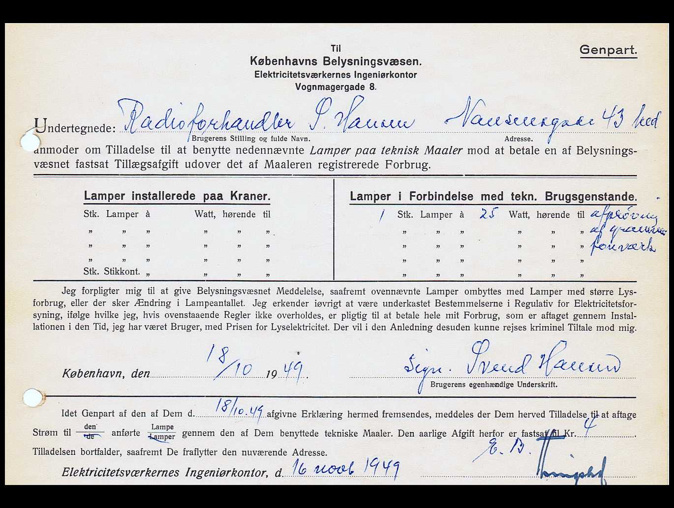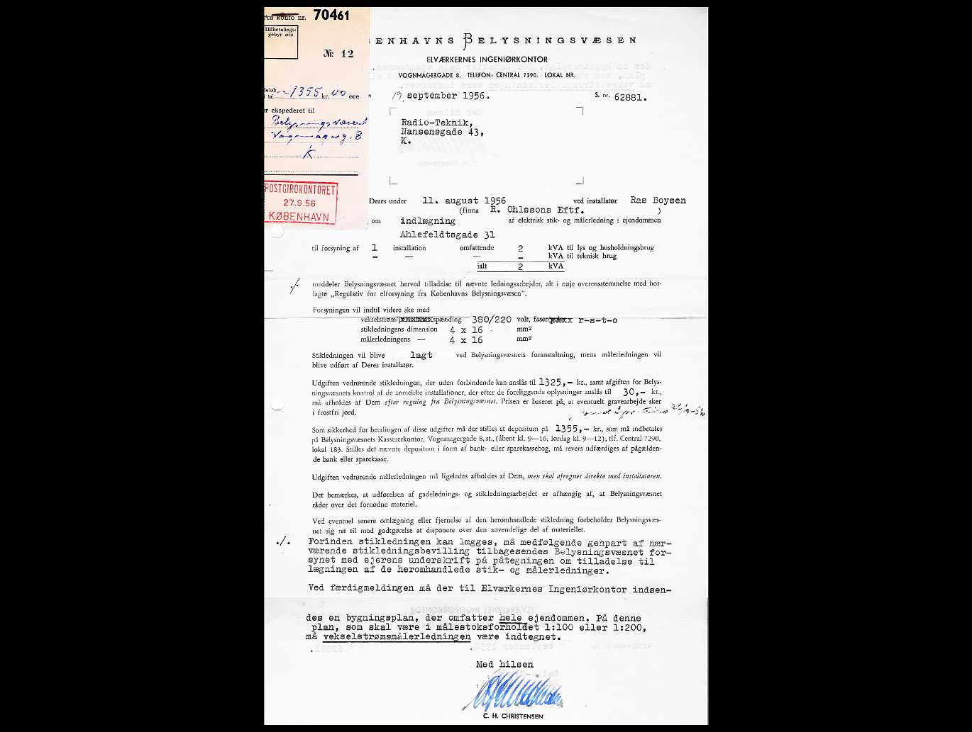 Der indlægges 380/220 volt VEKSELSTRØM i de nye lokaler Nansensgade 41.