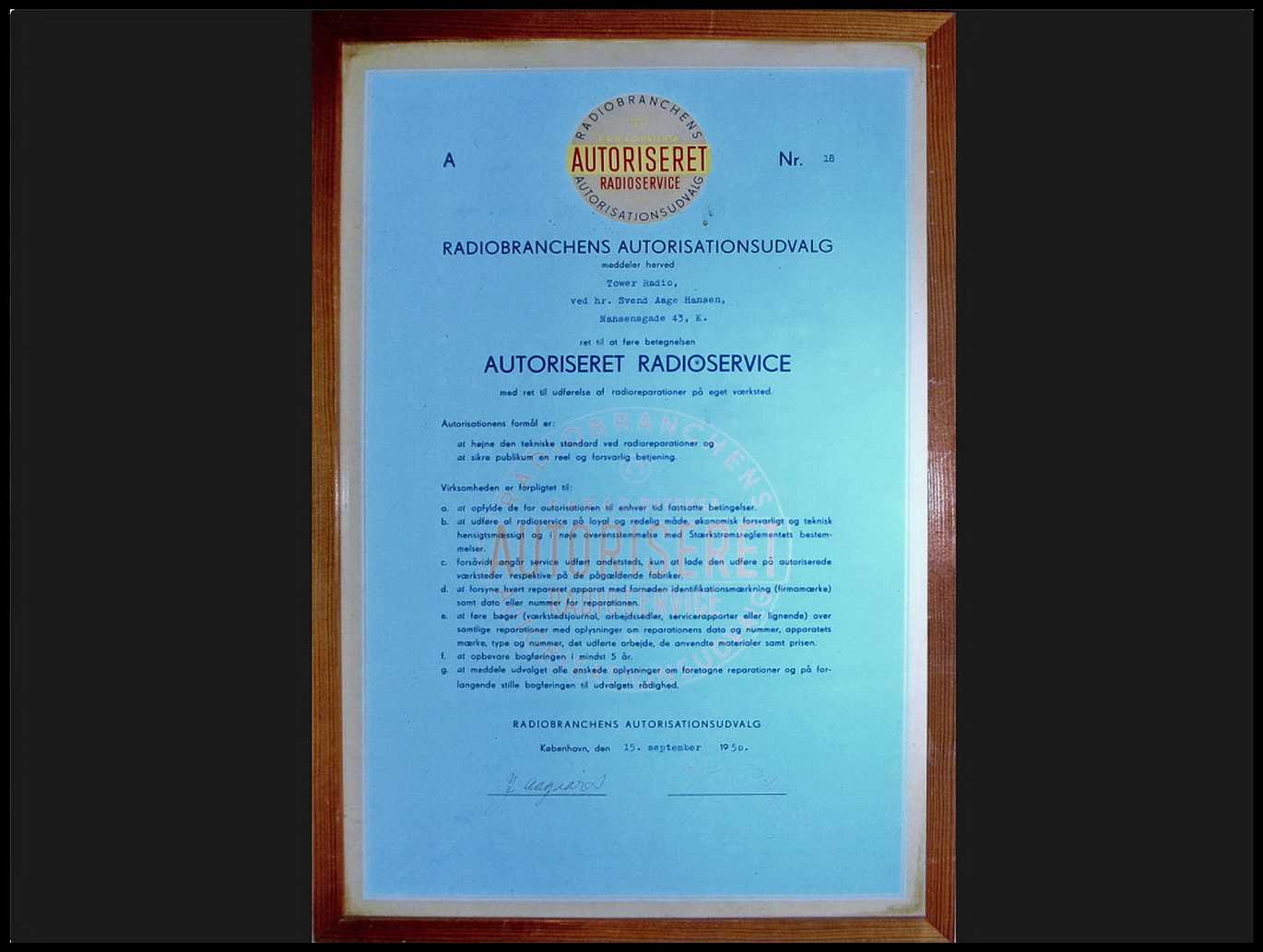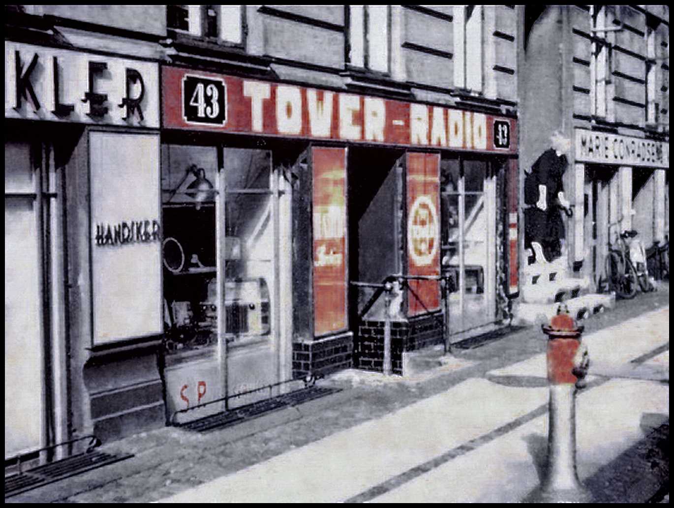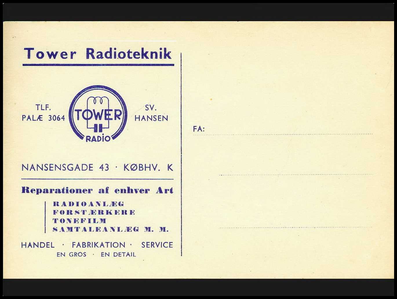 TowerRadio Nansensgade 43 i perioden 1950-56 efter oplæg af Niels Steinmann, lærling i perioden 1953-57. Den tidligere boligdel er nu tilknyttet Tower Radio.
