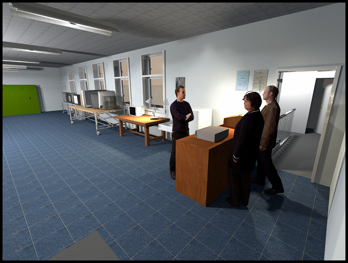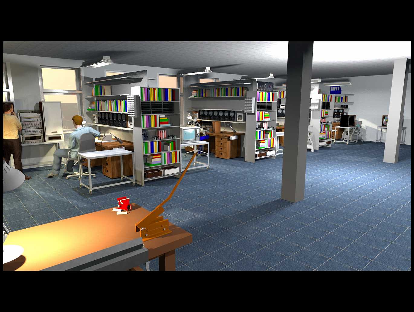 View fra elevatoren, som transporterede dagens reparationer til og fra Pope/DUX i underetagen. Opgaverne fra Pope/DUX var typisk garanti-reparationer.