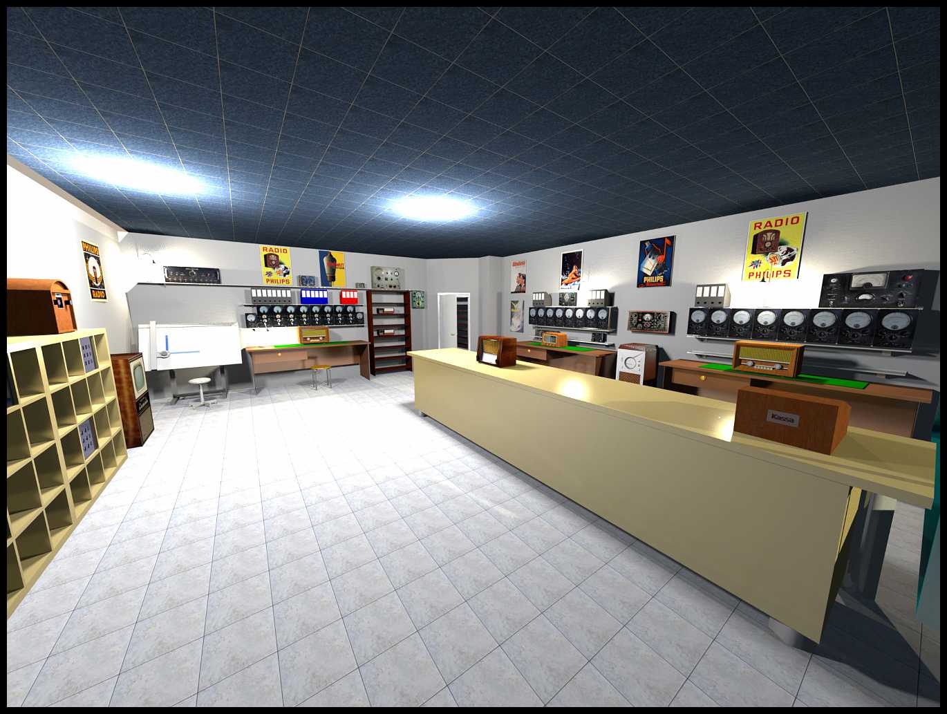 Stiliseret fremstilling af butikslokalet indikerende udseendet i perioden 1945-50.