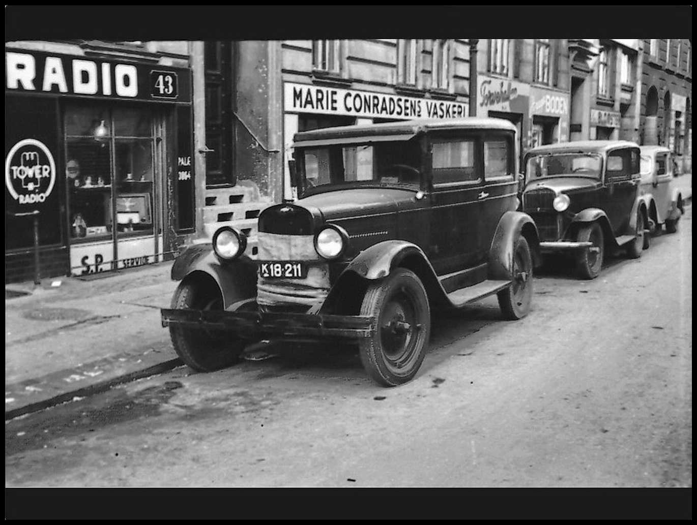 Tower Radio strakte sig et godt stykke med ad Nansensgade. Det er i øvrigt Kjeld & Dirch's berømte 'Nansensgade Skole' der skimtes midt i billedet tilbagetrukket bag flagstangen.