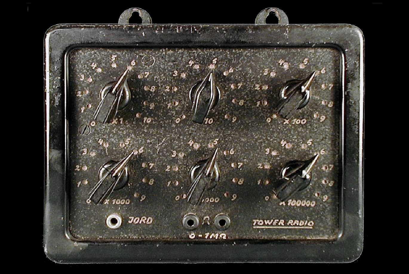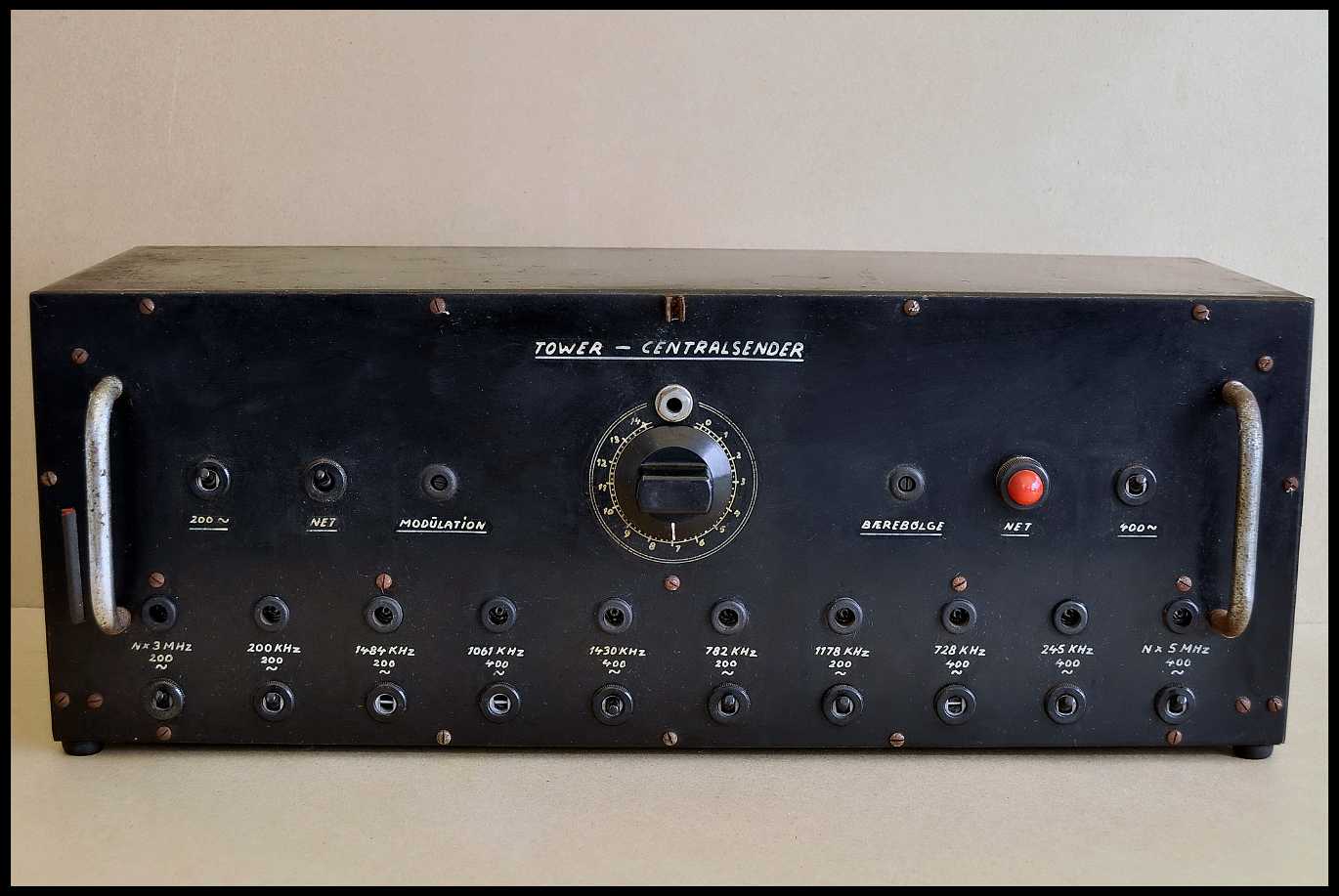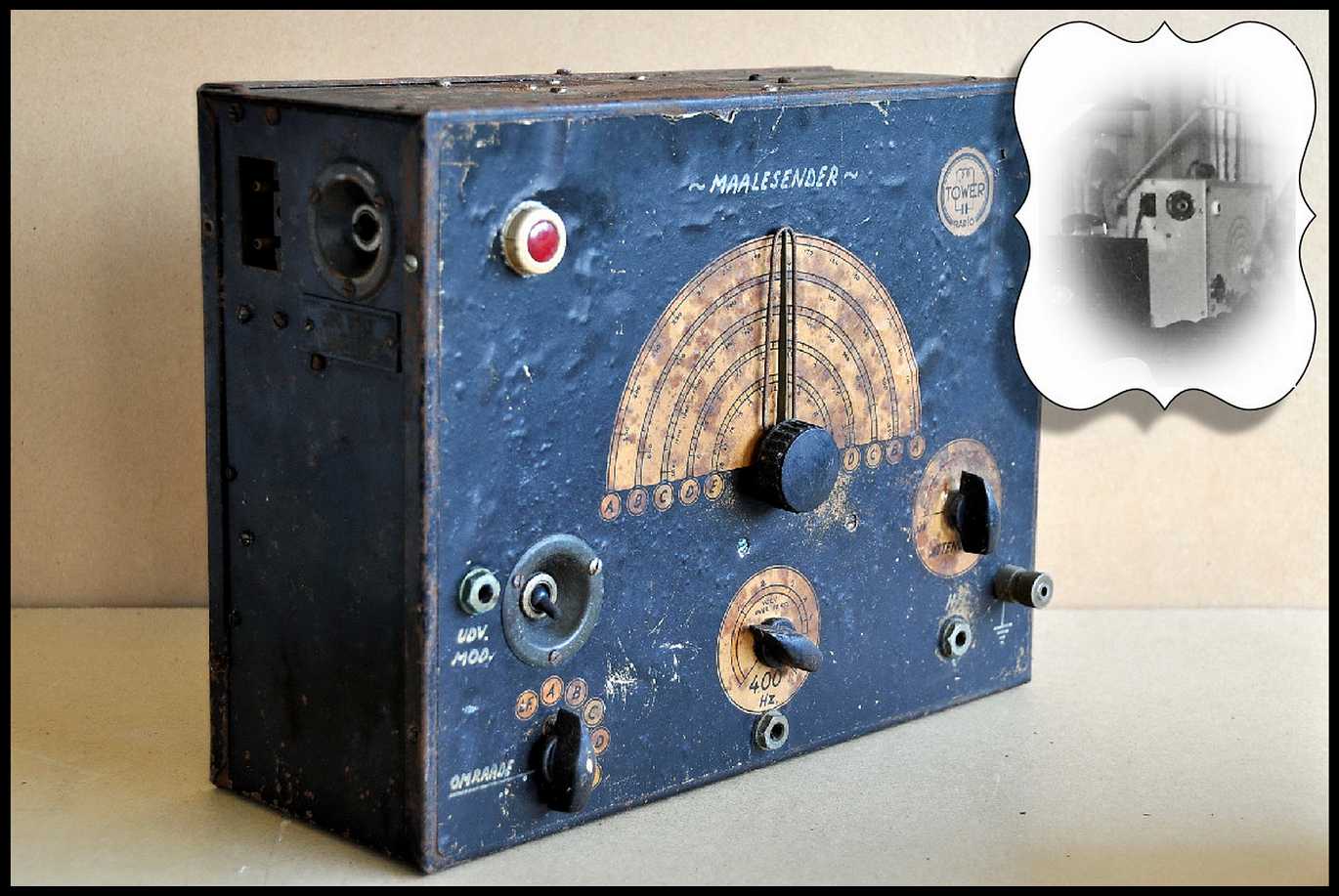 Tower Målesender. Det indsatte billede viser generatoren i hvid udgave, som den så ud d. 18. dec 1943 hjemme på Svends værelse. Det er mao. et af hans første projekter.