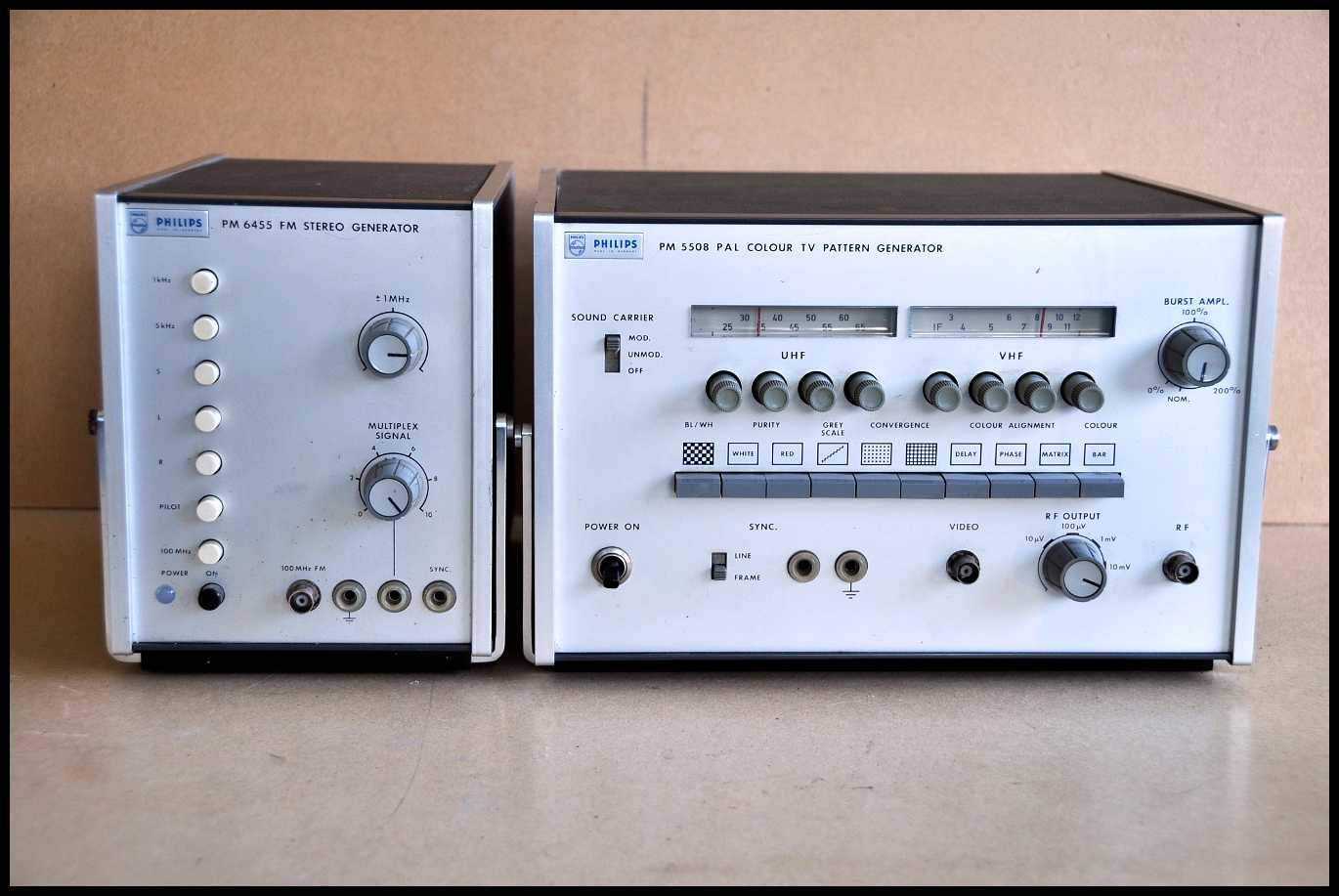 Philips PM 6455 FM Stereo Generator og PM 5508 PAL Colour TV Pattern Generator. PM 5508 er i øvrigt udviklet af Niels Vollmer, Svend Hansens sønners senere chef på Telelaboratoriet.