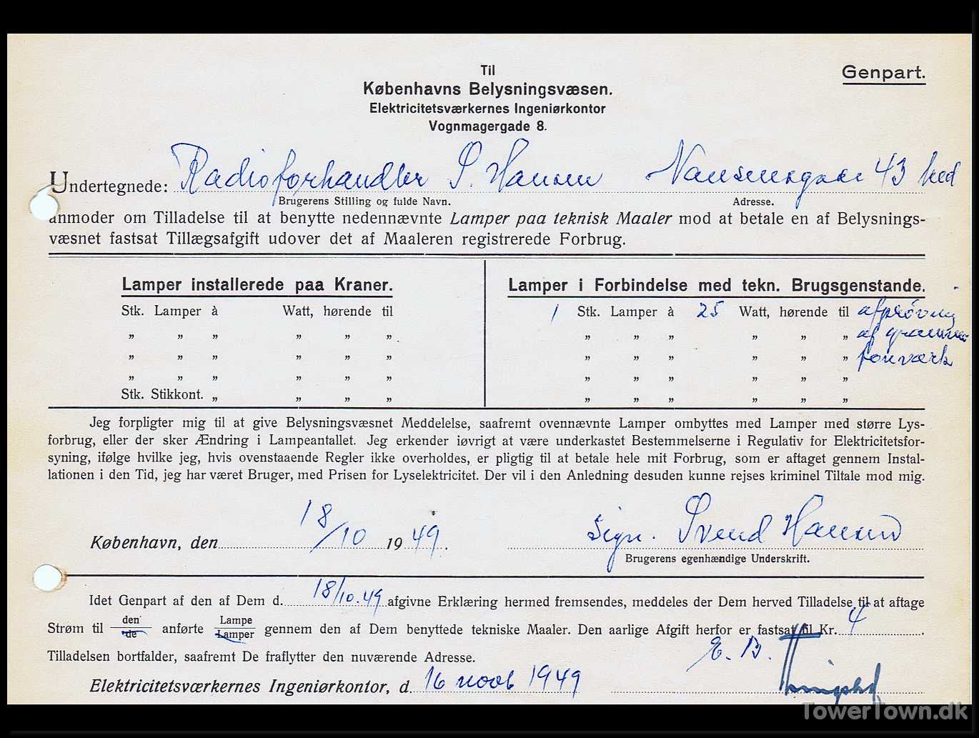 Der indlægges 380/220 volt VEKSELSTRØM i de nye lokaler Nansensgade 41.