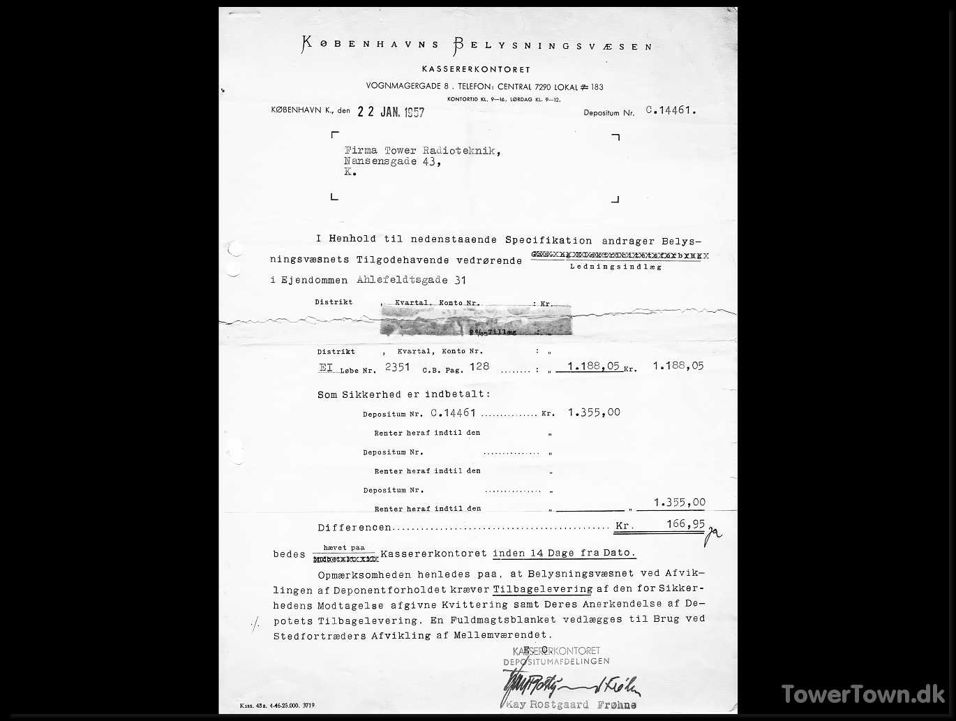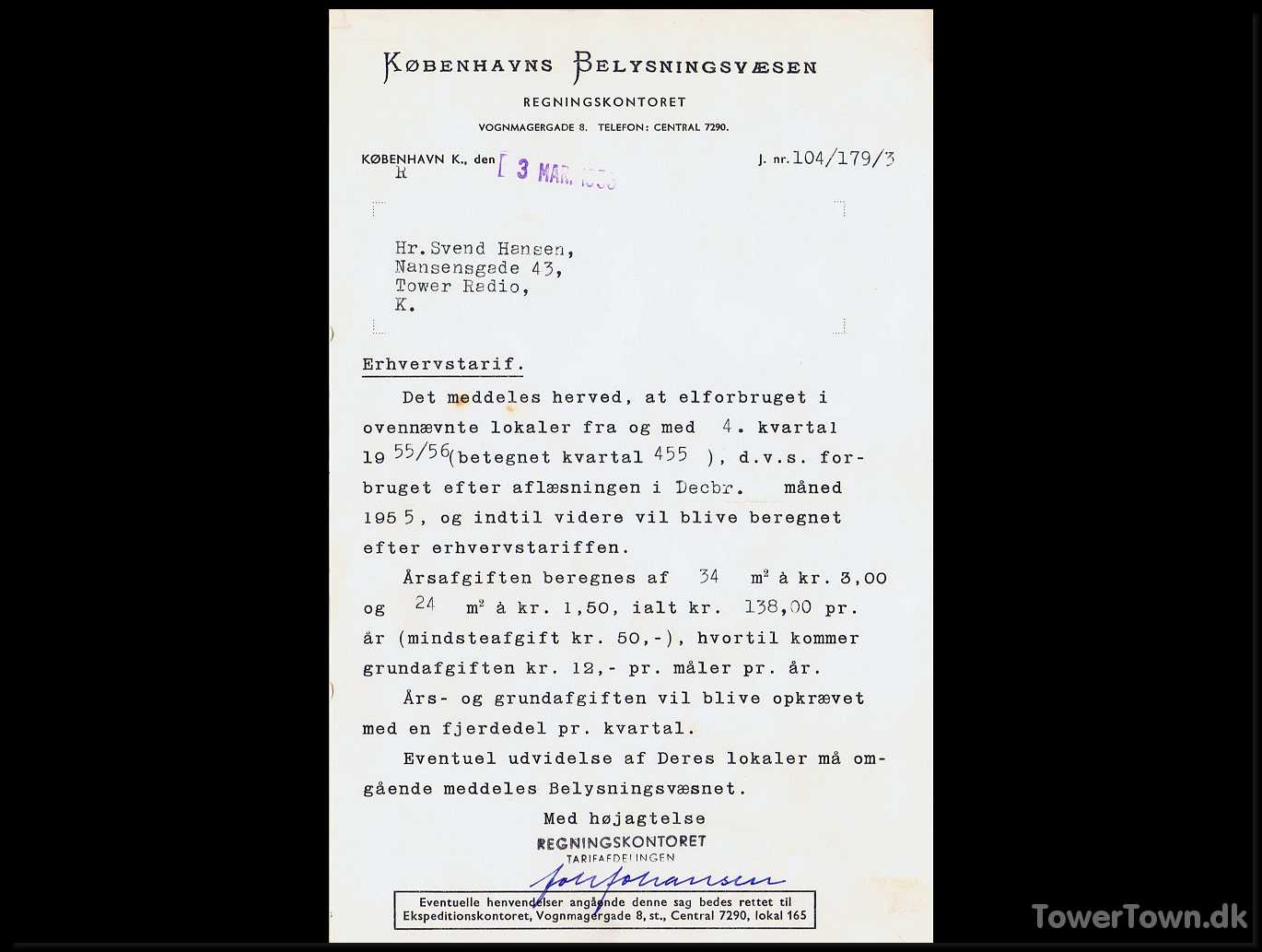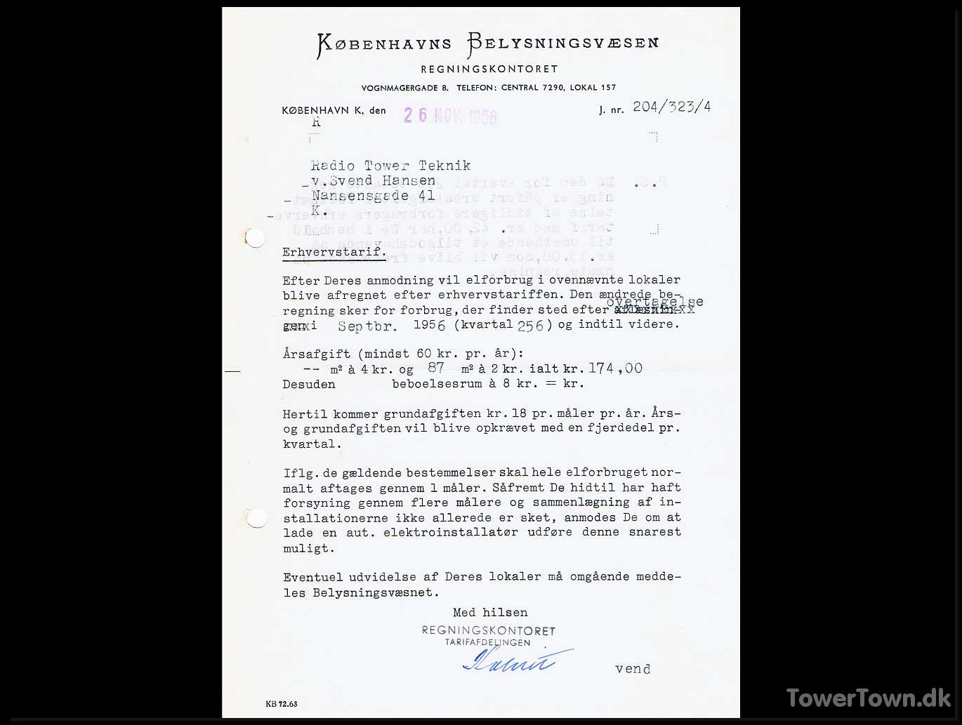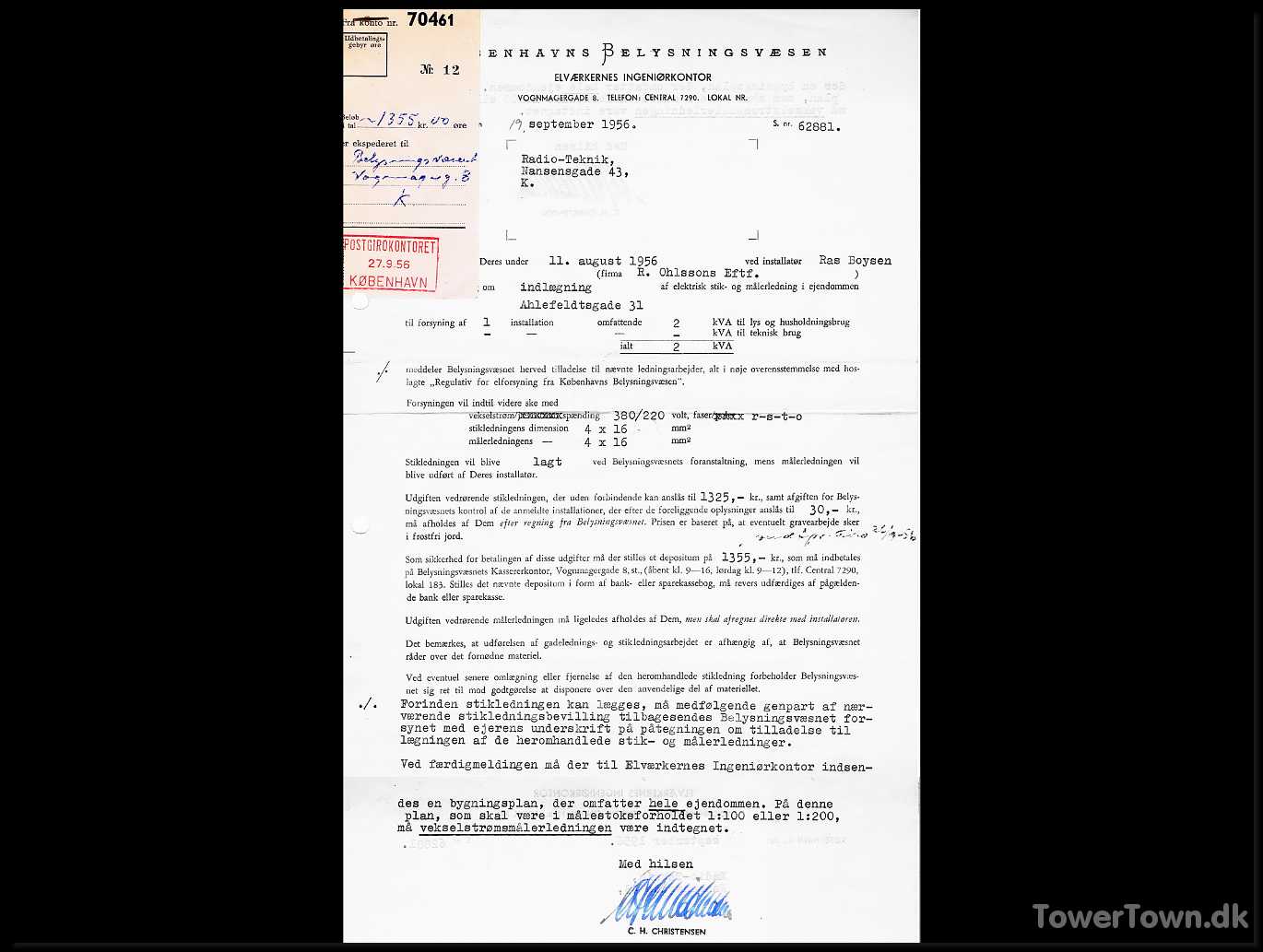 Udregning af EL-forbrug for de nye lokaler Nansensgade 41 i 1956.