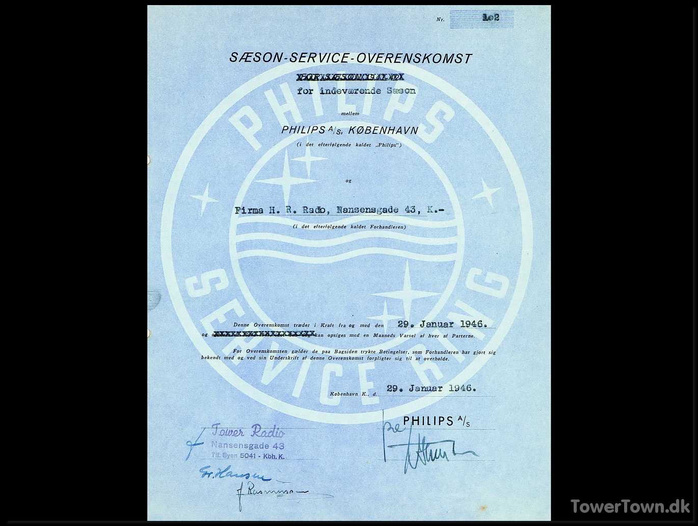 Philips Sæson Service Overenskomst fra 29/1-1946. |