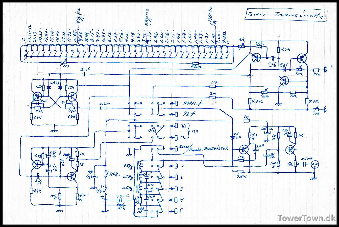 Diagram til orglet der havde arbejdstitlen 'Tower Transinette'.