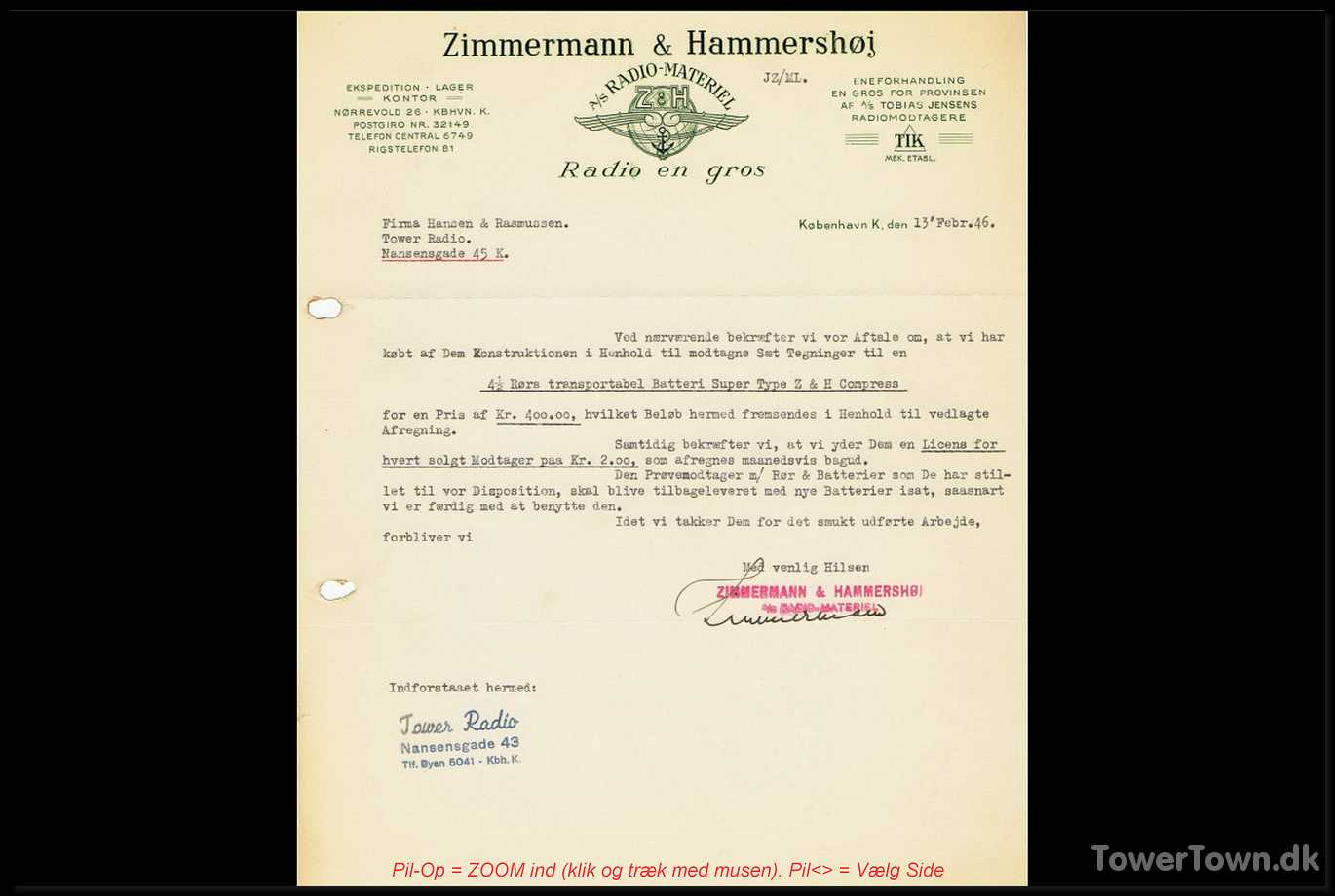 Der er tale om en '4½ Rørs transportabel Batteri Super Type Z & H Compress' købt af Zimmermann & Hammershøj.