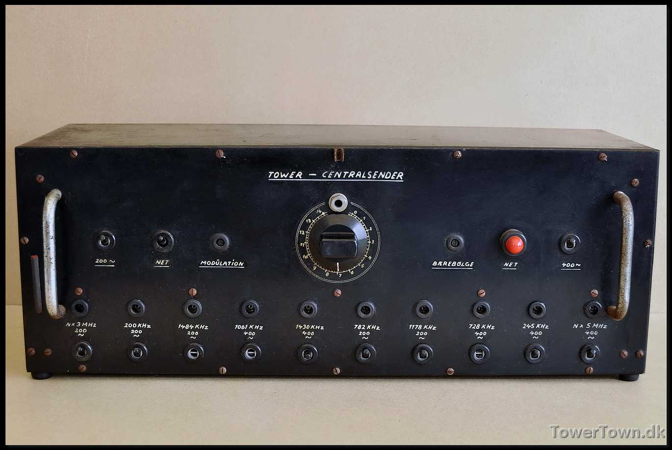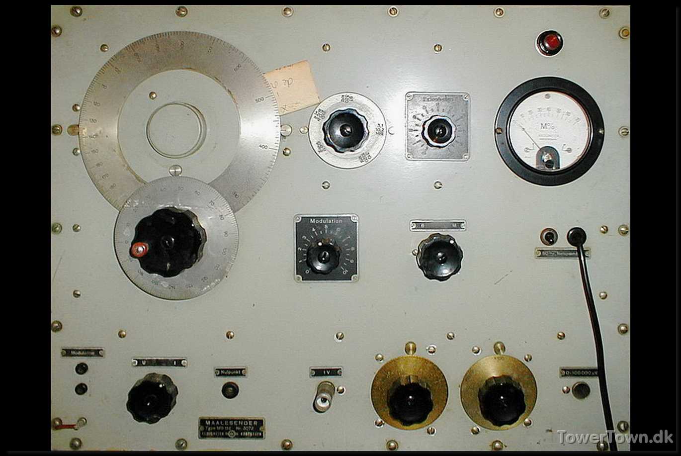 Tower Målesender. Det indsatte billede viser generatoren i hvid udgave, som den så ud d. 18. dec 1943 hjemme på Svends værelse. Det er mao. et af hans første projekter.
