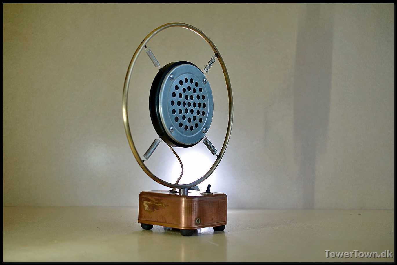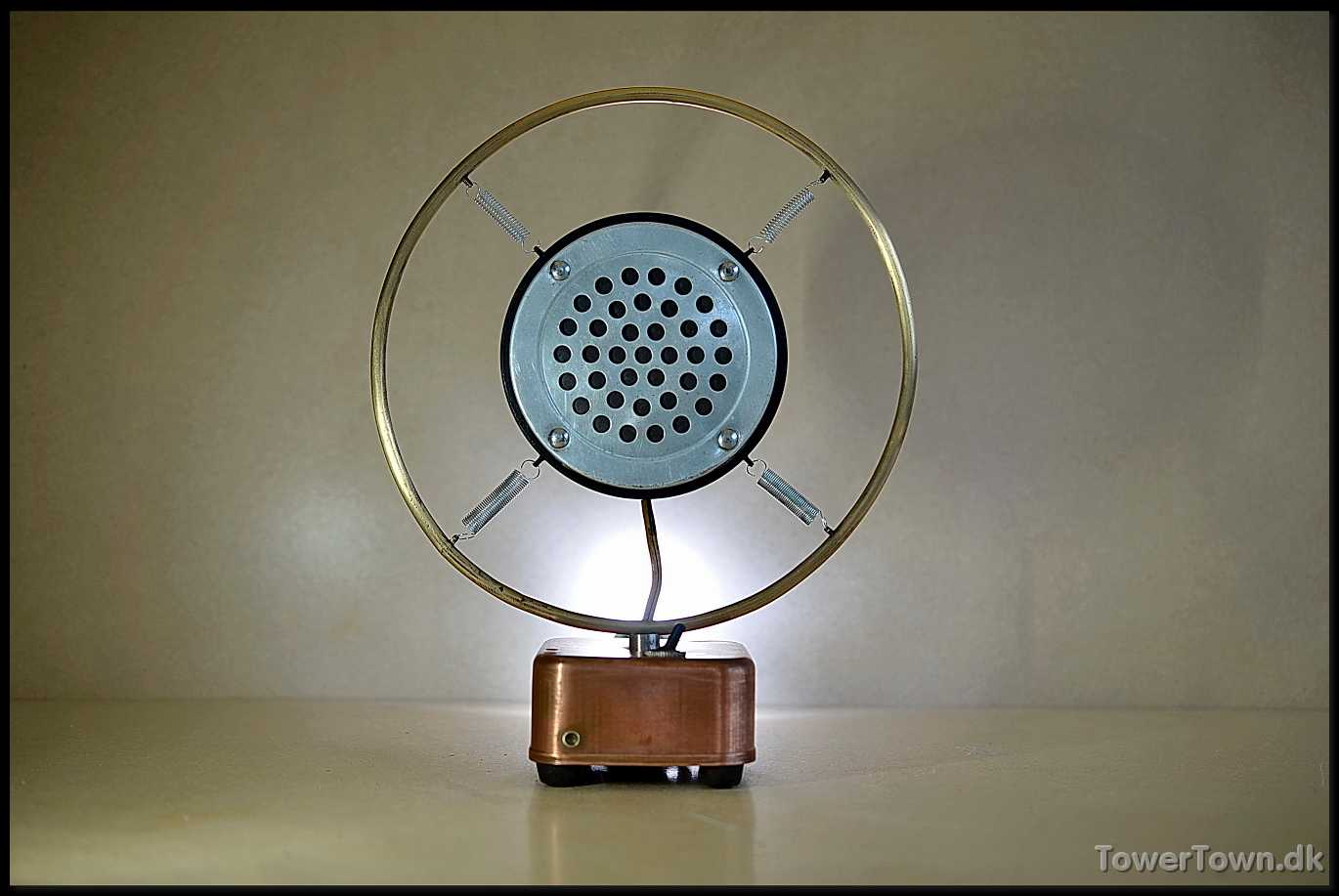 Mikrofonkapslen er ført til stikket i serie med afbryderen og et 4.5 volts batteri.